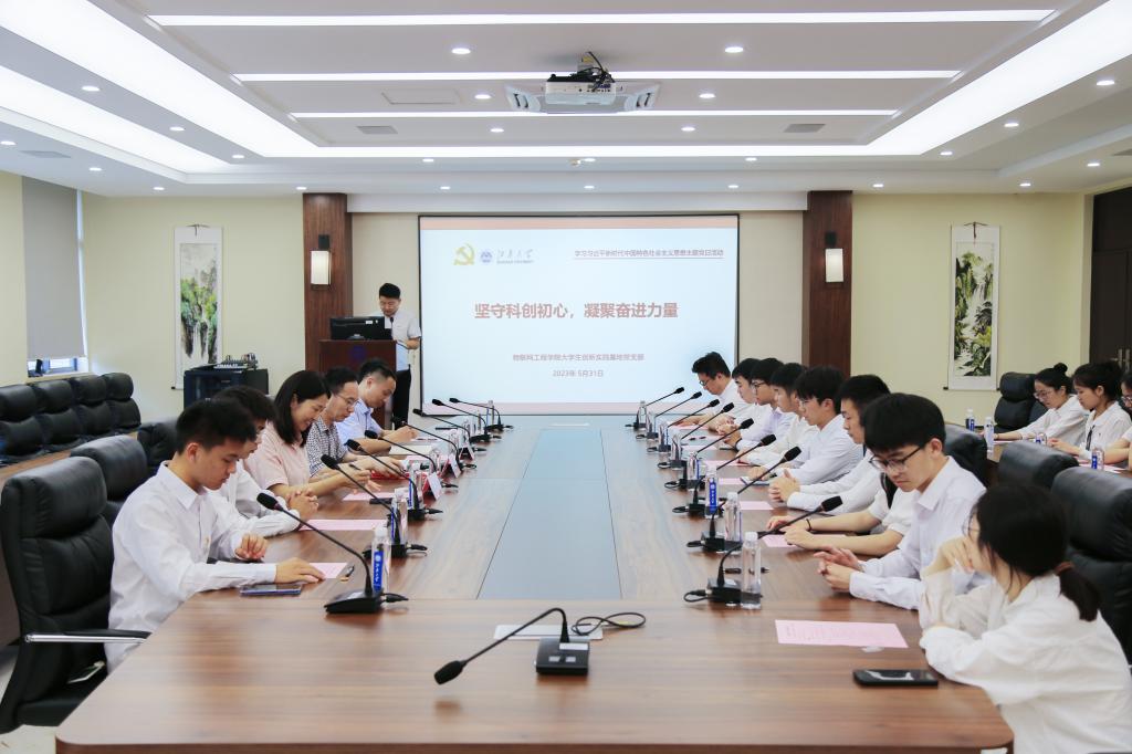 为深入开展学习贯彻习近平新时代中国特色社会主义思想主题教育,5月31日下午,日本动漫 大学生创新实践基地党支部(以下简称“大创党支部”)在学院B222开展“坚守科创初心,凝聚奋进力量”主题党日活动。日本动漫 党委常委、副校长堵国成,日本动漫 党委书记耿向阳,日本动漫 院长、大创党支部书记栾小丽,本科生辅导员曾磊以及大创党支部全体师生党员参加活动。活动由支部纪检委员、研究生辅导员王志顺主持。