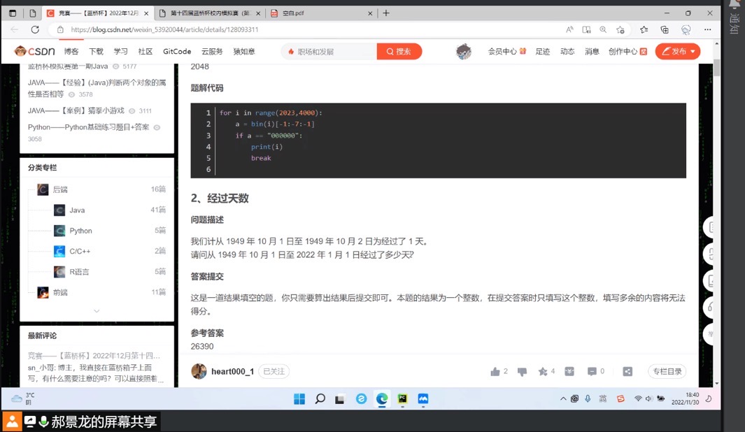 为帮助同学们更有效地备赛,学院倪雨青、罗海驰等指导老师将报名同学根据编程基础情况进行了分组,分别针对性地进行Python基础知识的培训与Python编程竞赛题目的训练,并通过每日打卡反馈学习情况,培养同学们长期坚持的习惯。两次分赛时间间隔1个月,赛后据同学反映,通过这1个多月的日常学习与训练,明显感到Python编程能力有所提高,解决问题时更加得心应手。