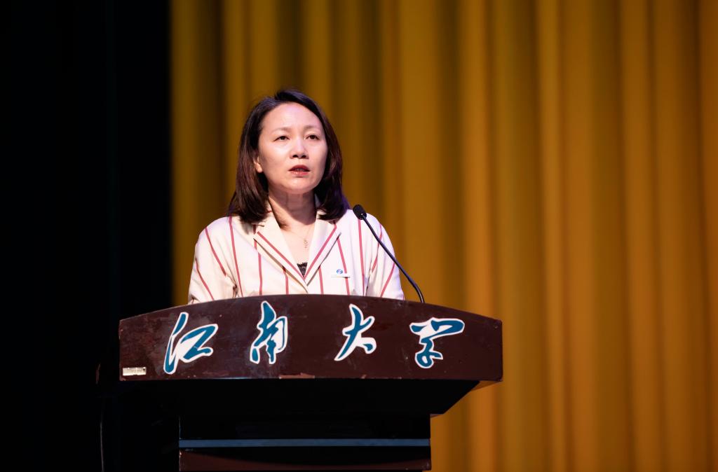 在庄严雄壮的国歌声中,开学典礼正式拉开序幕。在热烈的掌声中,程捷音代表全院师生对2022级新生的到来表示欢迎,并为大家的江南生活送出了三个祝愿:一是愿新生们家国天下,壮志豪情。行动是青年最有效的磨砺,她鼓励大家在百年变局和世纪疫情的不平凡时刻,用实际行动诠释“使命”二字的含义。二是愿大家求真求知,青春无悔。奋斗是青春最亮丽的底色,她以控制科学与工程专业万海英同学“本硕博”九年的江南求学时光和层出不穷的学霸宿舍为例,期望大家在知识的海洋里尽情遨游、攻坚克难,获得真知、增长才干。三是愿同学们心中有爱,身心健康。她用自己工作20余年的经历勉励大家养成良好的生活习惯,用健康的体魄支撑自己的学业和事业,用阳光的心态在追梦的路上勇敢拼搏。