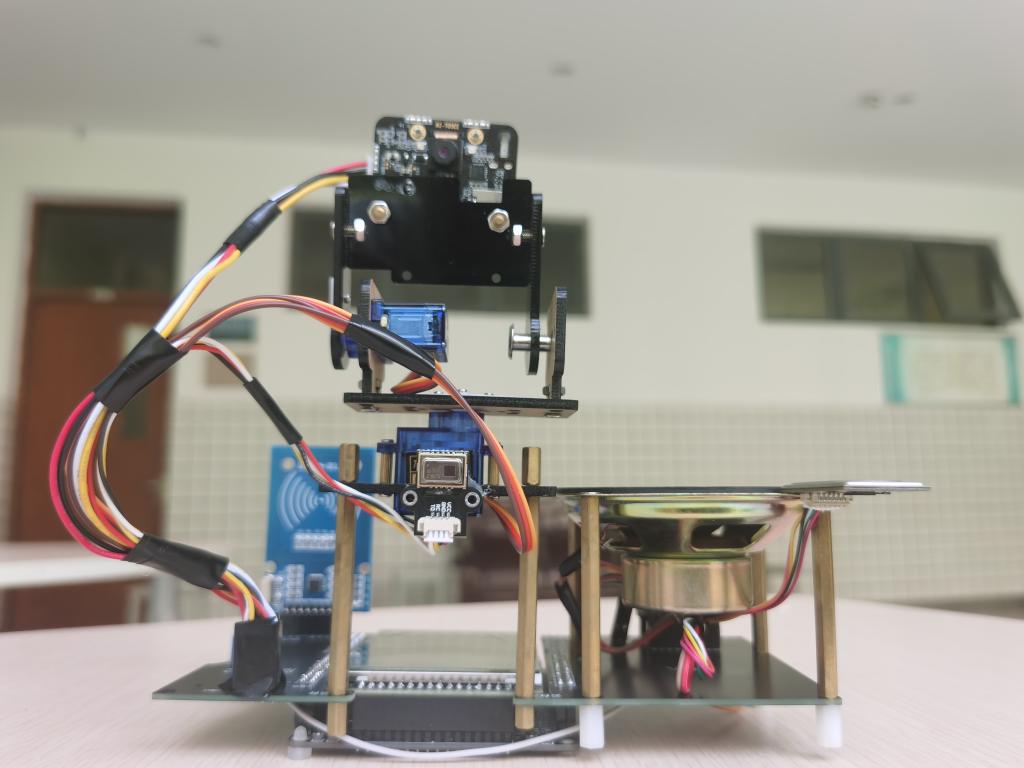 孙顺远、冯伟老师指导的国赛二等奖作品《基于深度学习的社区防疫门禁》由段勤硕、苏春宝、朱旭等三名同学共同研发完成。该项目是鉴于当下繁重的疫情防控工作,尤其是人员流动的控制上,通过设计一套“防疫检察官”系统,能够自动地完成出入人员的健康与身份检测,从而最大程度地减轻监测人员的工作压力。产品功能涵盖了口罩佩戴监测、健康码/行程码检查、指纹识别、IC卡内容读取与显示、体温检测等,针对不同的岗位要求在功能上可以进行一定的选择,主要应用于各类人员流动密集的公共场所入口处,可有效实现人员流动复杂场所的数字化、精准化防控。