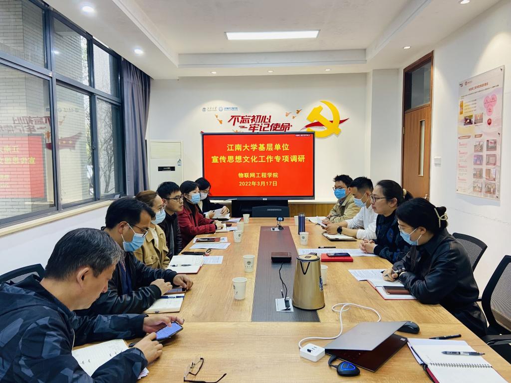 听取学院汇报后,宣传部一行对学院宣传思想文化工作的做法成效给予肯定。陆敏芝指出,学院努力壮大主流思想舆论,新闻稿件质量高,典型宣传力度强,建议在新媒体素材供给过程中加强校院两级的协同,“融”聚传播合力,写好“江南”文章。梁建对学院“三全育人”综合改革试点单位创建工作提出建议,希望学院进一步凝练与总结,形成可复制、可推广、可借鉴的改革经验。会上,双方围绕意识形态工作、新闻宣传、融媒体建设、“形势与政策”课程建设等进行了深入交流。