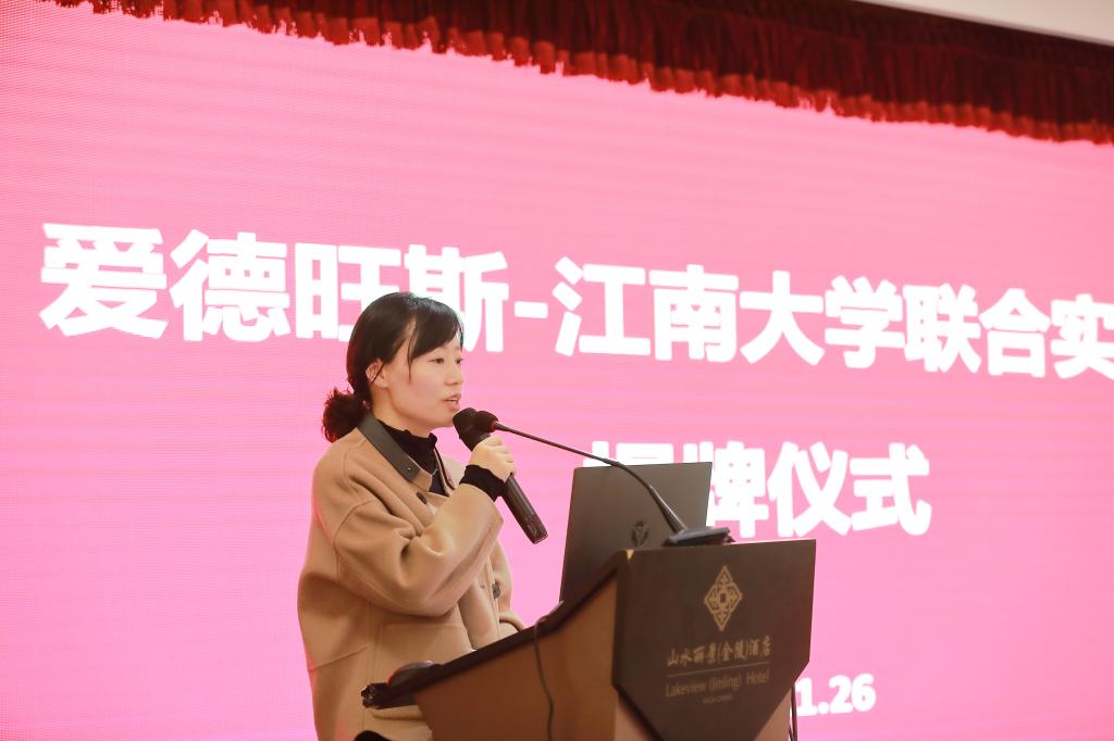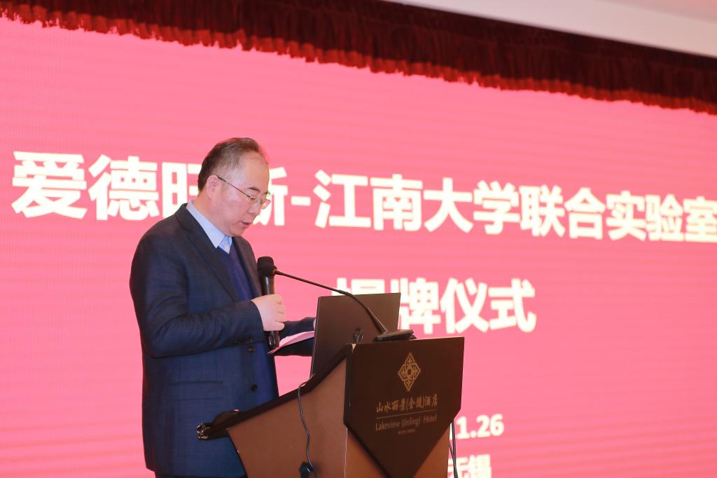 致辞,他表示,学校将继续以服务国计民生为己任,紧密对接国家战略需求和地方经济社会发展需要,积极参与国家和区域创新体系建设,大力推进科技服务、协同创新与科研成果转化,开创江南特色产学研协同发展之路。他希望联合实验室本着“优势互补、双向参与、共同发展”的宗旨,针对重点领域加强合作,努力实现科学研究、产业应用和人才培养的互惠共赢。