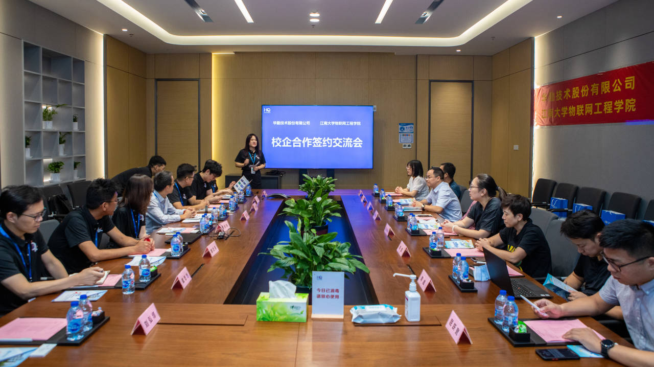 与华勤技术股份有限公司校企合作签约仪式在华勤无锡研究中心举行。华勤技术股份有限公司人力资源副总裁阮泉、人力资源总监熊安琛、无锡人力资源经理关国君、图灵研究院软件产品总工程师颜文亮、图灵研究院自动化总工程师戴忠旭,日本动漫