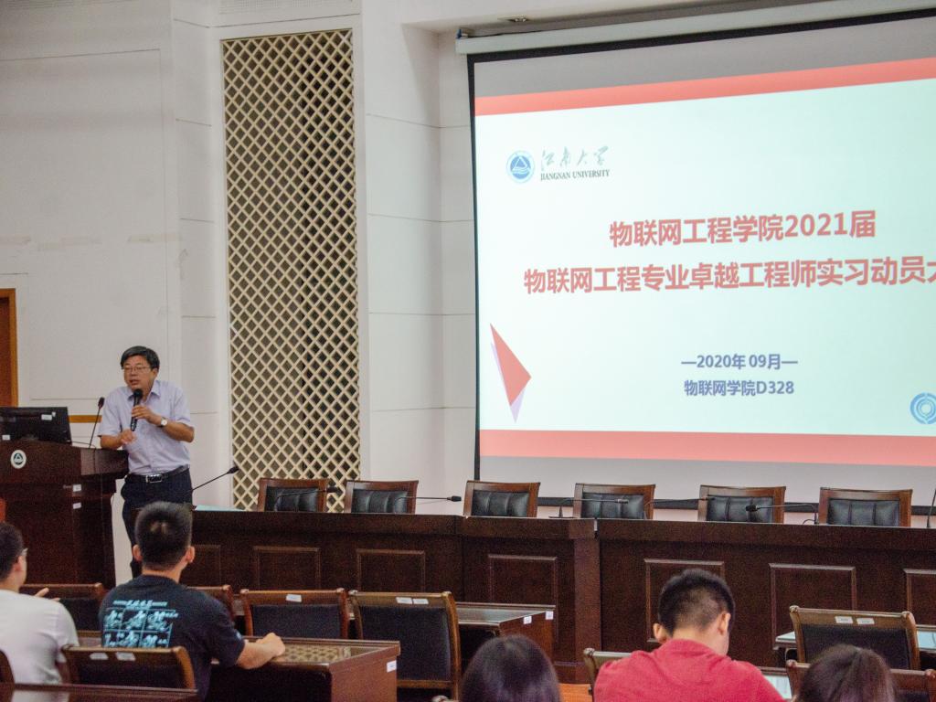 “卓越工程师教育培养计划”(以下简称“卓工计划”)实习动员大会在学院D328举行。信息技术系主任秦宁宁教授、专业责任教授朱启兵教授、吉训生教授及2017级物联网工程专业全体同学出席动员大会。会议由王志顺主持。