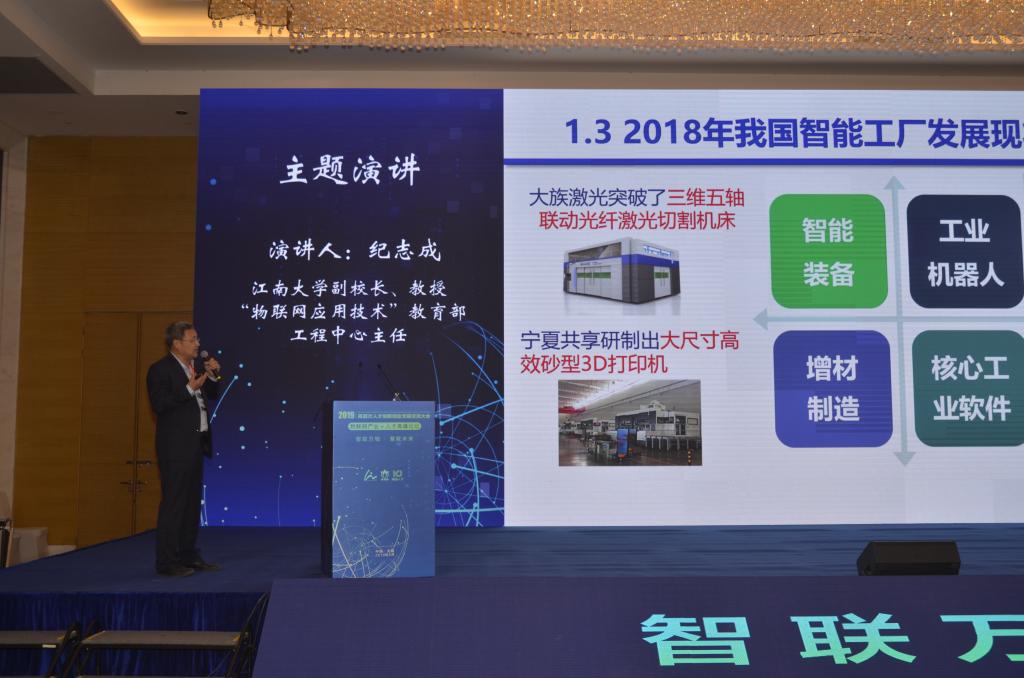 会上,针对我国智能工厂的发展现状和存在问题,纪志成作了《智能工厂共性技术与新模式应用》的主旨演讲,重点阐述了智能工厂实施的6大关键技术,同时分享了研究团队将该项技术分别应用于离散型和流程型制造企业的应用新模式和典型案例,并向与会代表介绍了无锡市人民政府与日本动漫