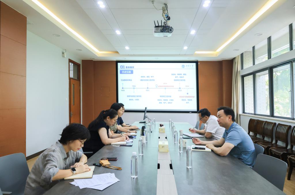 栾小丽从人才培养、师资队伍、学科建设、社会服务等方面详细汇报了学院发展的现状、存在问题、工作举措及思考。她通过对标国内同类高校控制学科在人才培养、师资资源、科学研究等方面的相关数据,提出学院未来要紧扣国家战略和区域经济发展需求,强化学科特色和专业布局,提升高层次人才队伍规模,努力推动控制学科内涵建设。张华汇报了学院党建工作基本情况,重点介绍了落实立德树人根本任务、推动“一融双高”等方面的具体措施。