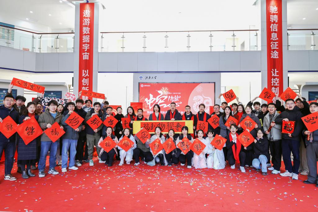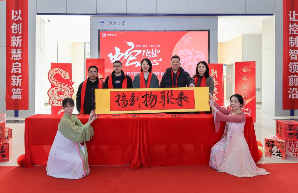 在学院大厅举办“巳巳如意,福满物联”2025新年游园会活动,喜迎元旦,欢度佳节。学院党委书记张华,院长栾小丽,党委副书记兼副院长吴妍,副院长陶洪峰、郭亚,院长助理等与广大师生欢聚一堂,共贺新年。