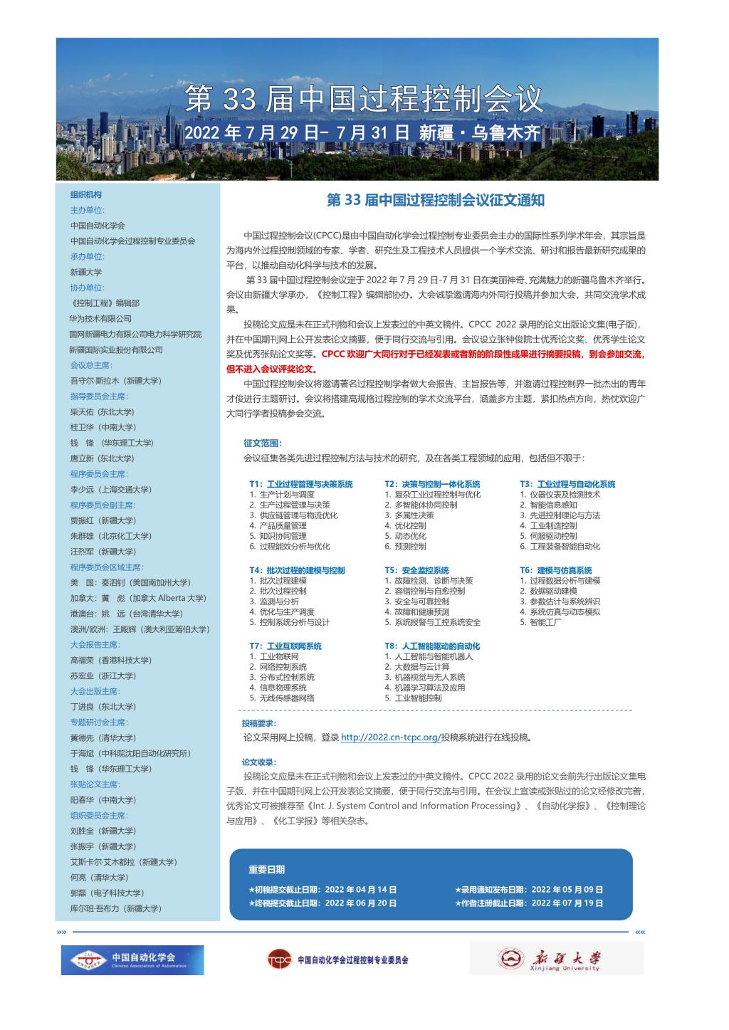 相关通知请从附件链接下载。 2_第33届中国过程控制会议征文通知-1028 v5.pdf