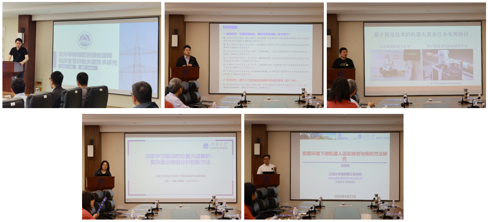 本次学术年会特别邀请了生物工程学院李崎教授作“AI赋能啤酒行业新质生产力”学术报告,该报告系统梳理了从原料筛选到风味调控的全流程智能化改造方案。实验室学术骨干周尧教授通过研究碳排放动态预警技术,为区域微能网低碳运行提供决策支持;王锴副教授介绍了生物系统建模、调控与设计相关内容;吴炜副教授介绍了复杂场景下机器人自主导航鲁棒控制策略;赵鑫副教授研究了基于拉曼光谱的混合物组分识别新方法;刘跃跃老师介绍了微机器人在受限环境下的运动规划与操控方法。与会教师围绕技术路线、学科交叉等维度展开深度研讨,现场学术氛围热烈。