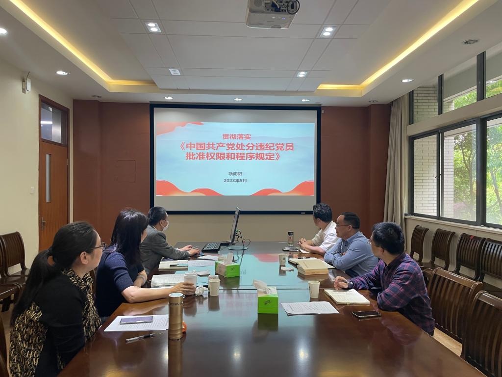 耿向阳领学了《中国共产党处分违纪党员批准权限和程序规定》,围绕文件出台的背景意义、重点内容、如何抓好贯彻落实三个方面,进行了详细解读。他强调,《规定》是我们党第一部系统规范和明确规定党的各级各类组织处分违纪党员批准权限和程序的基础性、主干性党内法规,要把学习宣传和贯彻落实《规定》作为重要政治任务,准确理解把握其核心要义,切实增强制度治党、依规治党的政治自觉、思想自觉和行动自觉;要以贯彻落实《规定》为抓手,坚持以严的基调强化正风肃纪,坚持不敢腐、不能腐、不想腐一体推进,坚决打赢反腐败斗争攻坚战持久战,全面建设清廉校园,为世界知名、中国一流、江南风格的研究型大学建设提供坚强保障。