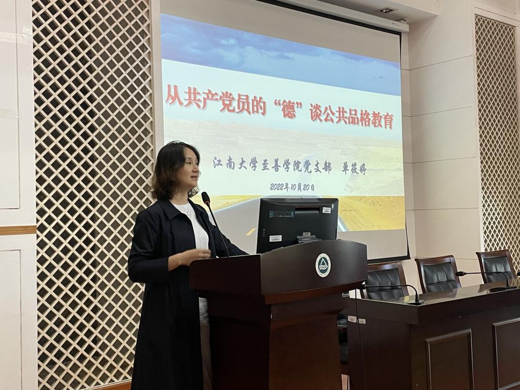 党委特邀至善学院副院长单筱婷讲授“从共产党员的‘德’谈公共品格教育”主题党课。学院150余名师生在学院D328会议室聆听了本次党课。活动由辅导员李灿主持。