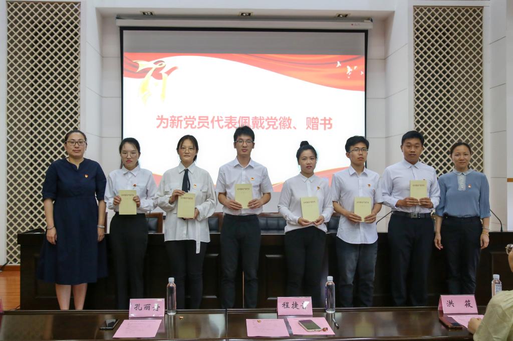 在D328会议室举行“七一”新党员宣誓仪式暨专题党课学习。学院党委书记程捷音、副书记兼副院长孔丽丹、分团委书记洪筱、辅导员代表李灿以及44名新发展学生党员参加活动。大会由学院专职组织员孙小芳主持。