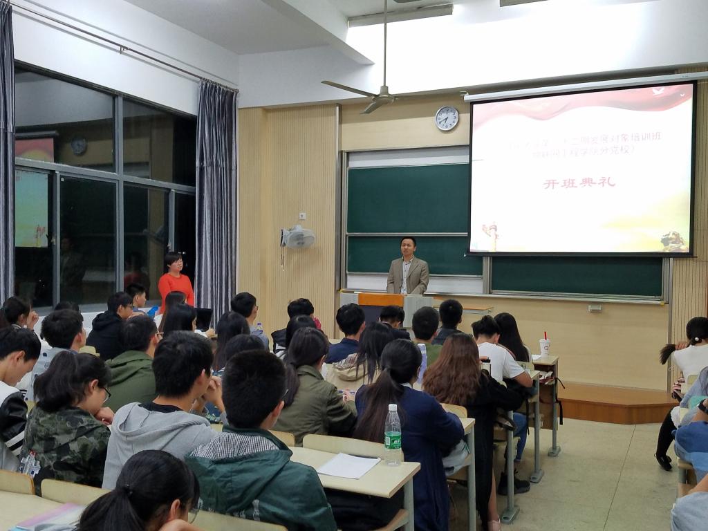 耿向阳老师做动员讲话,他对全体培训学员表示祝贺,并提出三点要求:第一,要端正学习态度,认真学习,高度重视党课学习机会,充分利用这次机会深化对党的认识;第二,注重理论联系实际,积极主动利用党课所学知识,分析国内外政局,关心国家建设与发展;第三,强化组织观念,严格遵守纪律,提高向党靠拢的积极性。