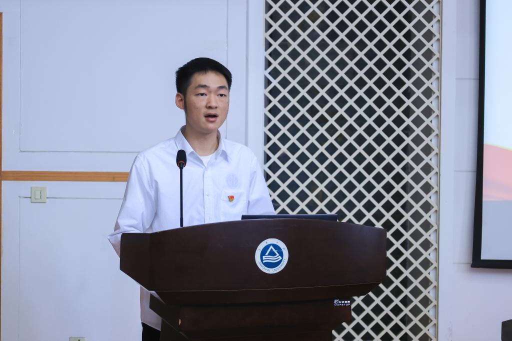 控制工程硕士第二党支部杨一超代表新党员发言。他表示,青年党员作为新时代青年的中坚力量,既面临着建功立业的人生际遇,也面临着“天将降大任于斯人”的时代使命。他号召全体党员要坚定理想信念、做政治明白人,锤炼道德品格、做思想领路人,深耕专业知识、做时代筑梦人,以实际行动践行铮铮誓言,为党旗争辉,为实现中华民族伟大复兴的中国梦贡献青春力量。