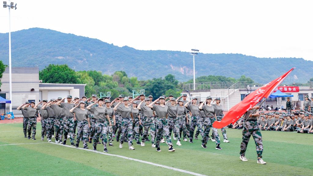 随后,参训学生代表组成分列式方阵,在教官统一指挥下做汇报表演。铿锵有力的口号伴随着整齐划一的动作,彰显了物联学子昂扬向上的精神风貌,赢得了热烈掌声。