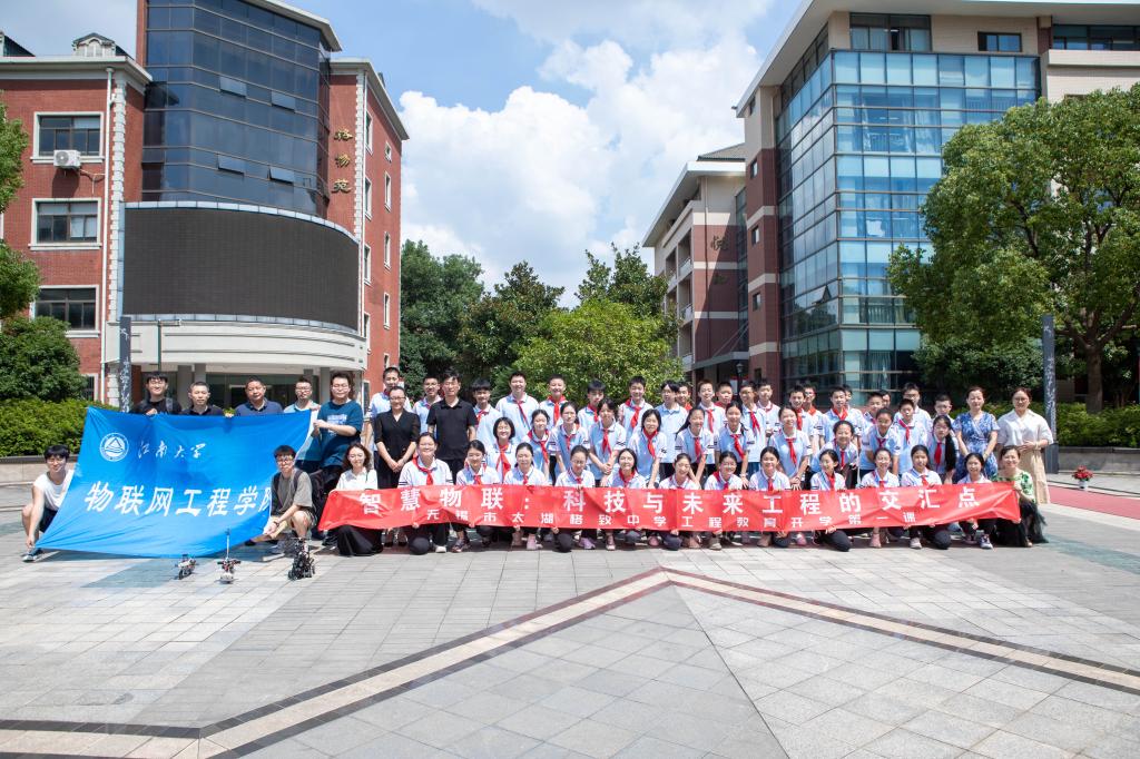 副院长郭亚教授、自动化系主任吴定会教授、实验室中心主任冯伟高级实验师、辅导员屈跃宽及物联网大学生创新实践基地党支部师生团队走进无锡太湖格致中学,为同学们开展了以“智慧物联,是科技与未来工程的交汇点”为主题的工程教育“开学第一课”。