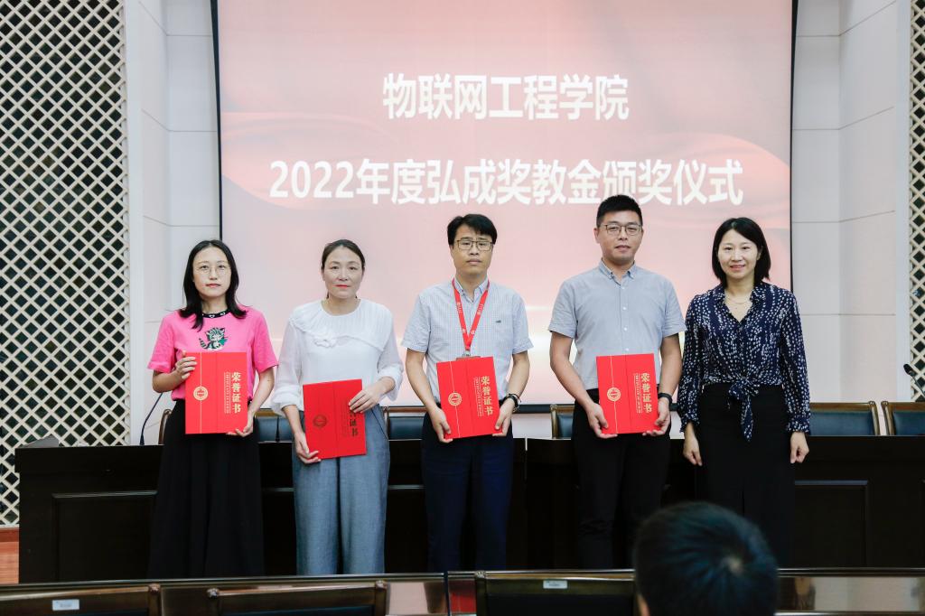 弘成奖教金是由弘成科技发展有限公司设立,旨在奖励为学院发展建设做出重要贡献或取得突破性、标志性成果的个人和集体,分别设有党建创新奖、科技突破奖、教育教学奖、管理服务奖、校园文体奖等奖项。2022年度“弘成奖教金”共设一等奖4项、二等奖8项、三等奖12项,其中,一等奖分别授予大学生创新实践基地党支部(入选全国党建样板支部)、“物联网技术应用”教育部工程研究中心(通过评估并获良好等级)、许德智老师(荣获国家优秀青年科学基金)和院乒乓球队(荣获日本动漫