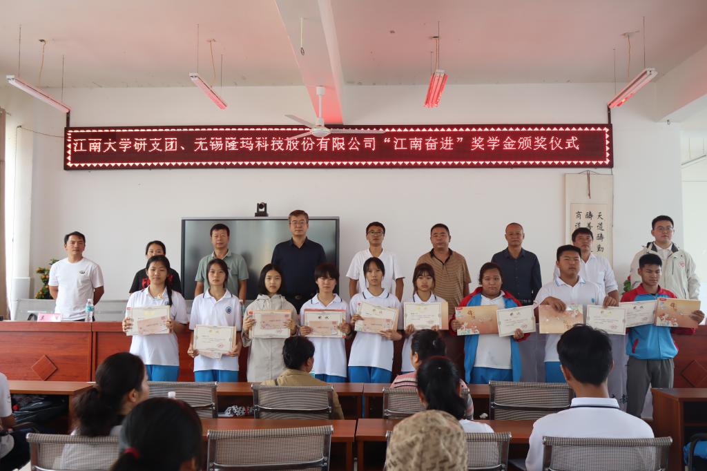 的积极联络下,无锡隆玛科技股份有限公司倾情赞助本届“江南奋进”奖学金,为20名优秀学子捐赠了总价值8500元的奖学金及精美奖品。