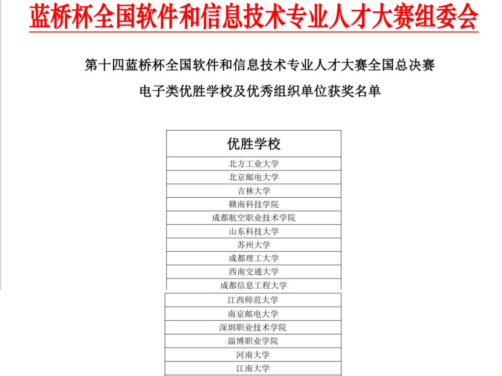 我校首次斩获“蓝桥杯”全国软件和信息技术专业人才大赛(电子类)总决赛一等奖