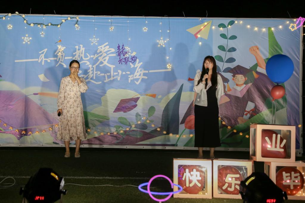 最后,辅导员李诗炜、陆奕君以真挚的言辞和深情的回忆,向毕业生们送上美好祝福,并鼓舞他们以昂扬的面貌迎接未来挑战。“我会牢牢记住你的脸,我会珍惜你给的思念,这些日子在我心中永远都不会抹去。”歌会尾声,全场合唱《再见》,辅导员、班主任与同学一起挥手告别,歌会在赠送专属毕业纪念品的互动道别中落幕。