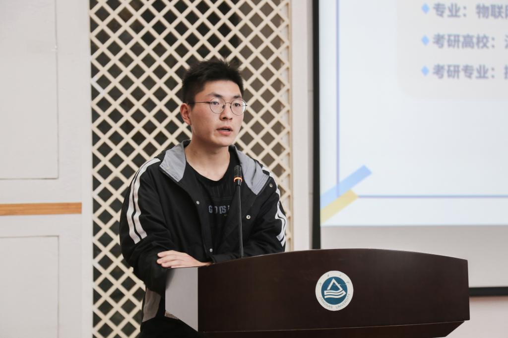 活动最后,2019级本科生代表孙亚伟作考研经验交流。他从“选择”“准备”“坚持”“感悟”四个关键词出发,分享自身为什么选择考研、如何准备考研、如何坚持考研和考研体悟等,解答了应当如何科学选定目标院校专业、如何选择备考资料以及学会动态调整自身状态等方面的问题。会上互动热烈,提问繁多,最终在意犹未尽的交流中结束此次讲座。