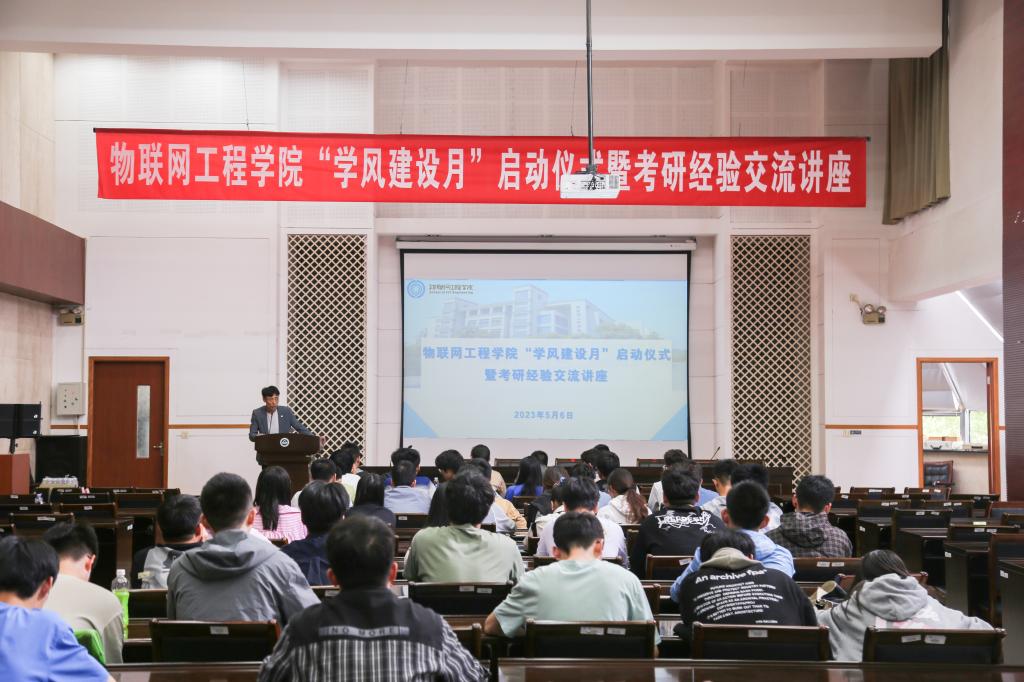 陶洪峰在仪式上致辞。他从学院发展和学生成长的角度阐述了学风建设的重要意义。他谈到,人生是场马拉松,更重要的是付出持之以恒的努力,如同学院学风建设工作一样,需要长久的潜心培育,才能更好地提升育人实效。他寄语广大物联学子,要奉行终身学习的理念,将优秀变成一种习惯,不断提升自身学习能力和解决问题的能力。希望同学们传承学院“唯实”院风,成就优秀个人、打造先进集体。