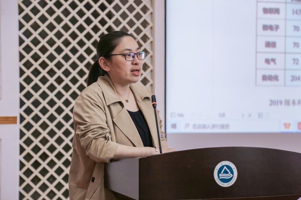 孔丽丹结合学院2019级本科生升学数据为与会同学作考研形势分析。她提到,今年学院本科生深造率再攀新高,微电子和电气两个专业突破50%,其中微电子1901班以61.11%的深造率拔得头筹。但随着考研人数的持续走高,总体报录比依然走低,以本学院为例,今年全国报考人数同比去年上升31.67%,考试难度增加。她希望低年级同学立足自身定位,科学确立目标,坚定信心决心,从高年级学长留下的宝贵经验中汲取奋进力量,学院也将营造优质学风环境,助力每位同学早日圆梦。