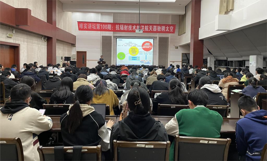 “唯实讲坛”系列学术讲座第100讲在学院D328会议室举行。中科院国家空间科学中心二级研究员、博士生导师韩建伟教授为师生们带来了一场以“抗辐射技术护卫航天器驰骋太空”为主题的精彩报告。本次讲座由学院辅导员李灿主持,180余名师生参加了本次活动。