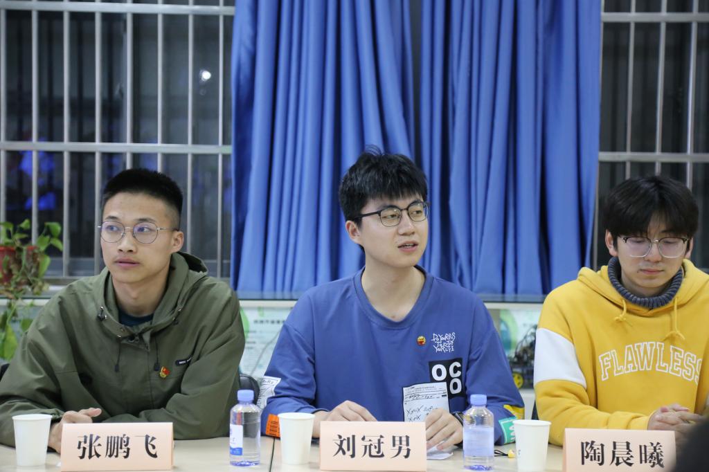 青春对话,互动交流。互动问答环节,“选择就业还是升学?”“如何走上科创之路?”“如何分配学习和学生工作的时间?”支部团员刘明昀、于浩洋、王佳瑞等踊跃提问,与七位学长学姐进行了面对面的青春对话。“无论是升学还是就业,都是一个不断学习的过程,没有好坏之分,只有合不合适、愿不愿意的基础判断。”万齐星就未来方向的选择阐述自己的观点。“关于科创, 大一是探索方向,大二是深度学习,大三是尝试比赛,大四是收获硕果”佴宇飞就科创竞赛诚恳地给出建议。这一刻,同学们的手握在了一起,心连在了一起,接过学长学姐手中的火炬,照亮前行之路。