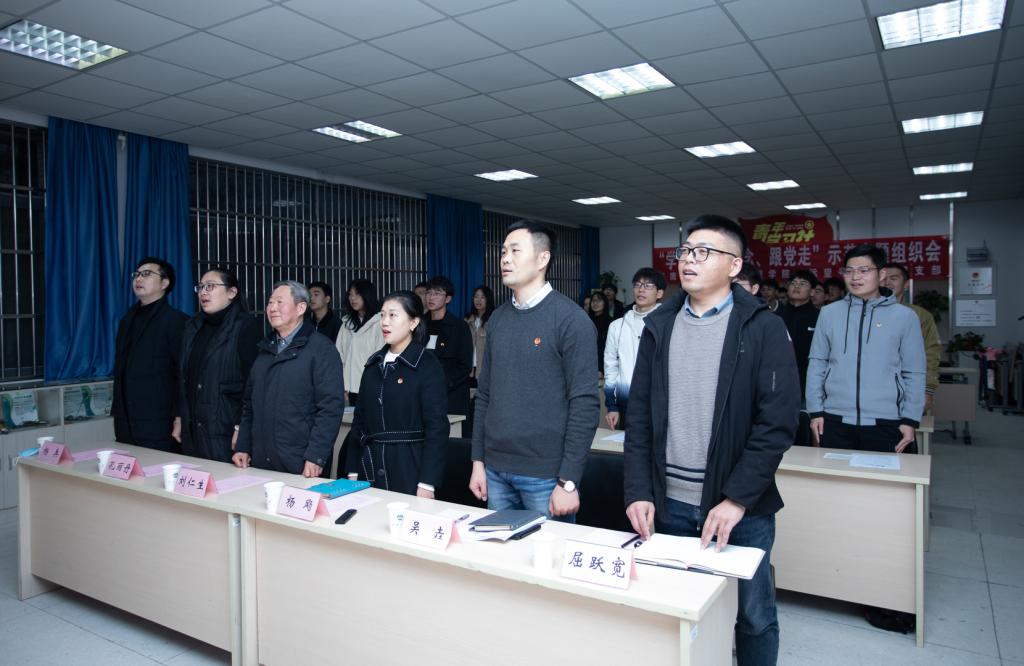 党委副书记孔丽丹,分团委书记吴垚,辅导员杨兵,班主任屈跃宽共同参加。学院部分团支部书记列席观摩。活动在昂扬的团歌中开始。