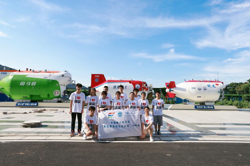 江南学子与奋斗者号等潜水器合影