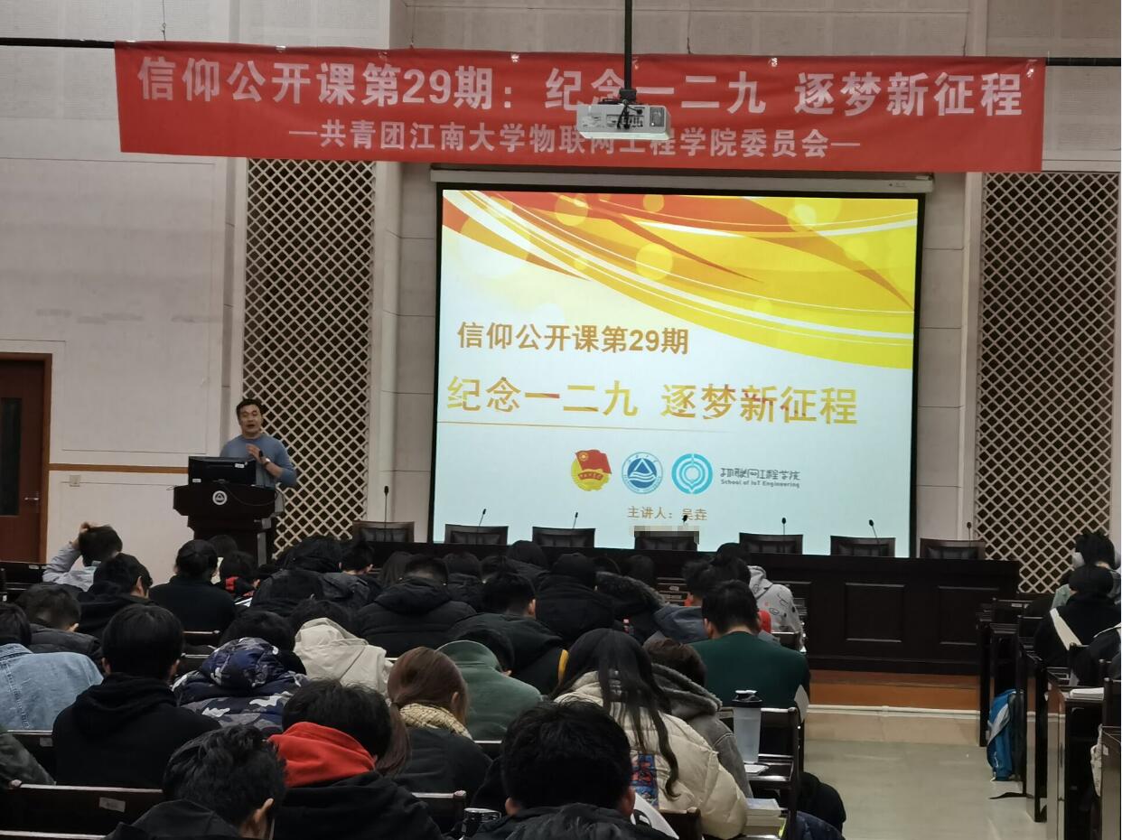 本次活动前,学院通过官微“物联时代IOT”转发了共青团中央的推文“一场跨越85年的对话”纪念一二·九运动85周年。信仰公开课上,首先播放了纪录片《大抗战之一二九·运动》。观看完影片后,吴垚老师通过结合中国共产党的早期发展、日本侵华战争的全面爆发、以及新民主主义革命时期学生运动的发展情况三条历史时间线,向同学们详细介绍了一二·九运动的历史背景以及全民族抗日战争中的重大意义。特别是讲到学生运动在唤醒民族觉醒,激发中华民族抗日救亡的历史意义时,重点强调了青年人应该有的时代使命和责任。最后,他结合党的十九届五中全会擘画的发展蓝图,向全体同学讲解了新时代青年应该奋进的新征程。并从一二·九运动的历史人物出发,鼓励广大青年要珍惜共青团员的政治身份,坚定不移跟党走,为实现“两个一百年”奋斗目标和伟大复兴中国梦贡献青春力量。