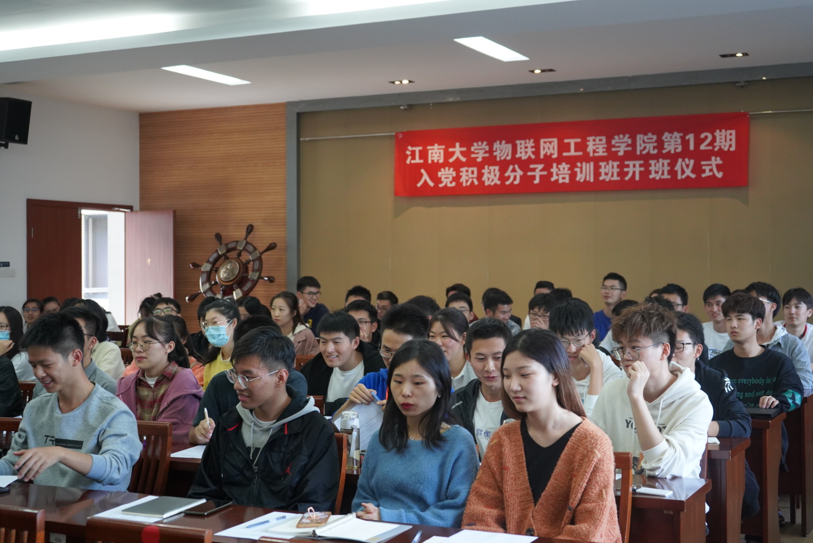 第12期入党积极分子培训班开班仪式暨第一次授课在学院B310报告厅顺利举行。原无锡轻工大学党委副书记、副校长李宗元,学院党委副书记、副院长孔丽丹,分团委书记吴垚、辅导员代表、学生党支部书记代表、第11期培训班优秀学员代表受邀出席活动,第12期培训班113名学员参加活动。开班仪式由王志顺主持。