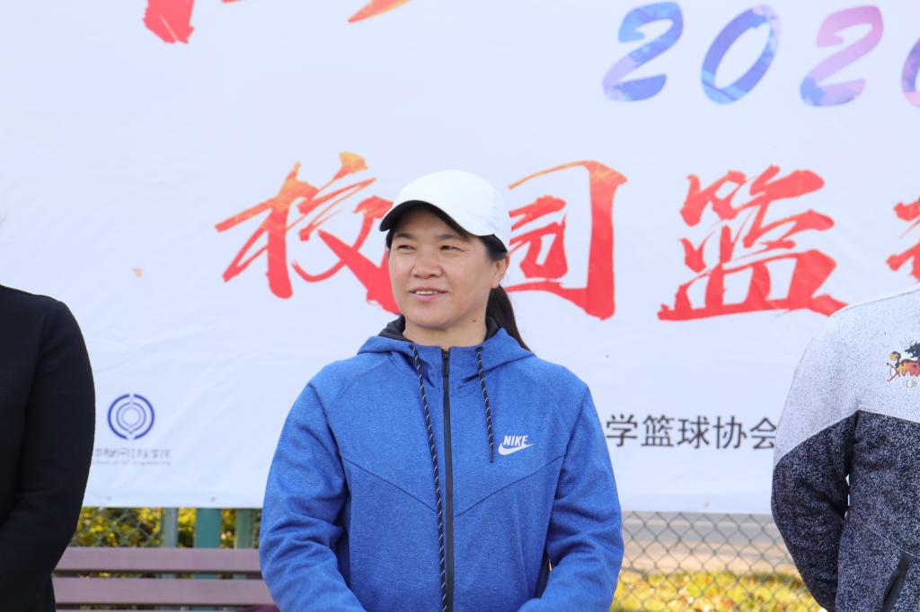 院队授予了“物联男篮”队旗,表达对院队的肯定与支持。在随后的致辞中,她向精心筹备、积极参与本次篮球赛的师生表示衷心感谢,并对全体参赛队员提出殷切希望。她从亲身经历引出了自己对篮球这项体育活动的热爱,指出操场就是课堂,运动能使同学们充满自信,不断重塑自我,超越自我,勇于争先;使同学们理解生活,勇于面对生活;使同学们看到生命的宝贵,勇于憧憬比现实更美好的人性和生活,并呼吁运动员们把自己对篮球的热情展现在赛场上,凝聚团队力量,赛出风采与水平。