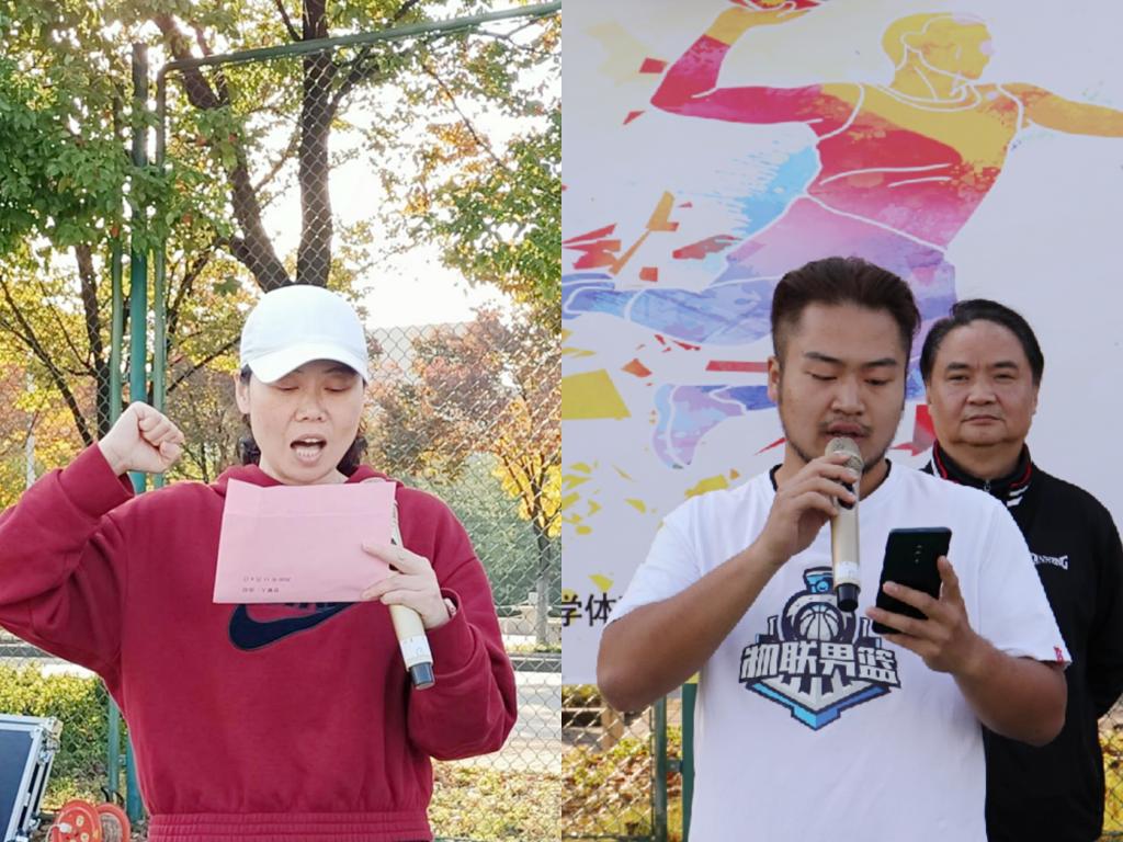 体育部副主任戴平宣布篮球赛开幕