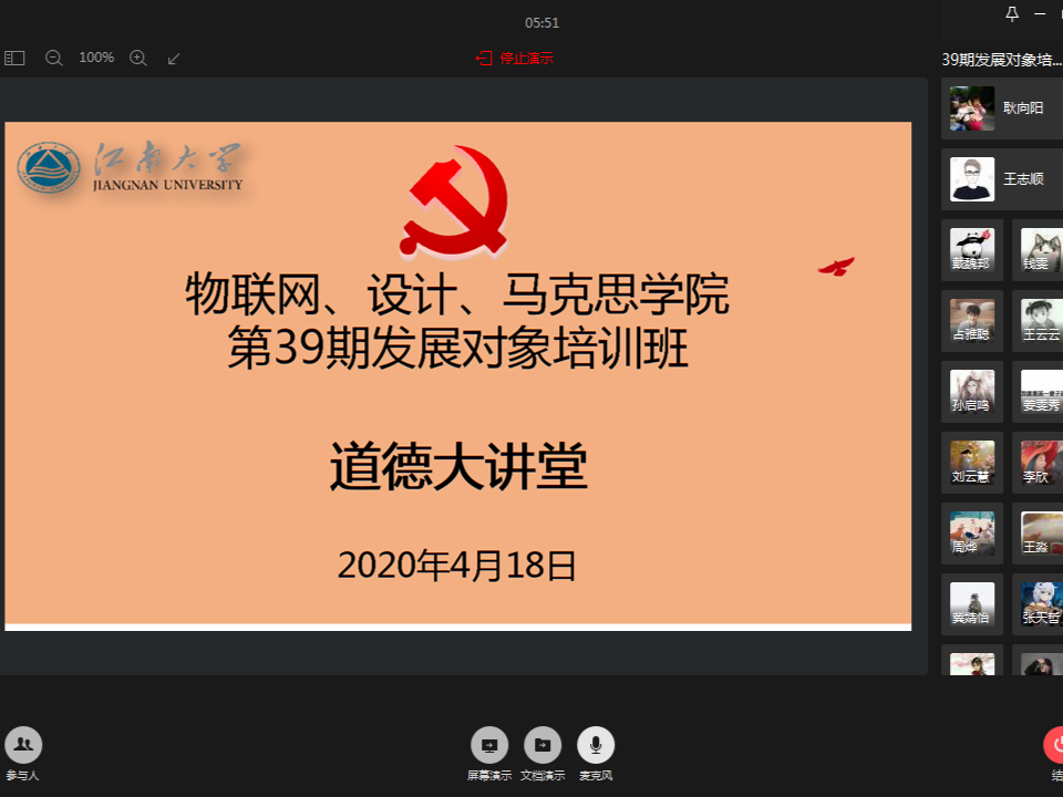 在疫情防控和延期开学的特殊时期,为加强学生党员发展对象培养教育,提高发展对象的政治理论水平和政治意识,近期,工程学院分党校通过企业微信等平台线上开展了一次特殊的云培训。此次分党校培训部分共安排四次直播授课,直播授课分别由日本动漫