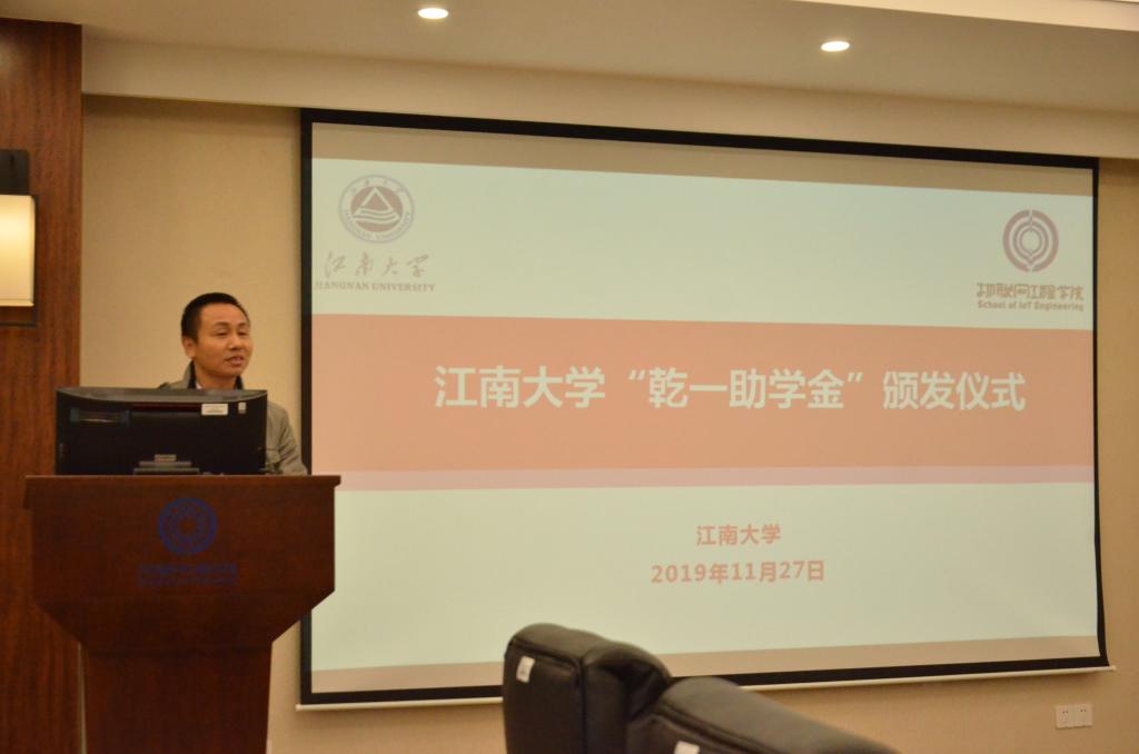 随后,物联网专业2018级学生程国振和计算机科学与工程专业2019级学生赵佳怡作为学生代表分别发言。他们表达了对上海乾一化学品有限公司、对娄宝安先生的诚挚感谢,表示奖助学金不仅是物质上的支持,更是一种肯定、一种鞭策、一种责任,他们不会辜负学院和资助单位的希望,将不断完善自我,取得更大的进步,带着支持与温暖不断前行。