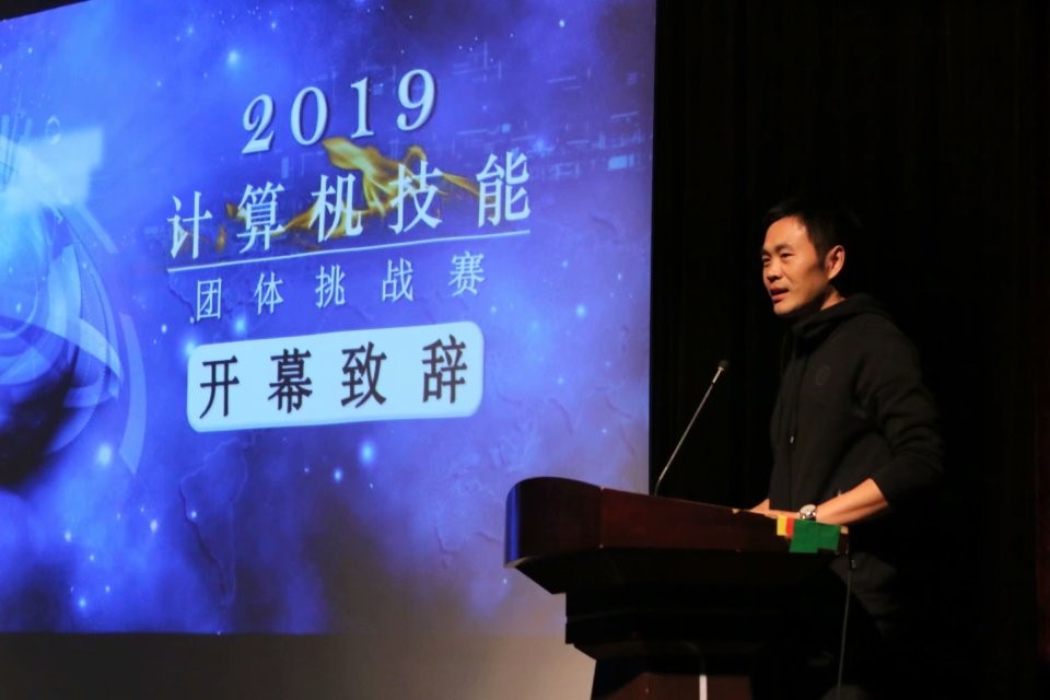 分团委书记吴垚致开幕词,他的致辞表达了对团挑寄予的美好希冀,同时他也表示希望能有更多的同学了解团挑、参加团挑,使计算机软硬件知识得到更大程度的普及。