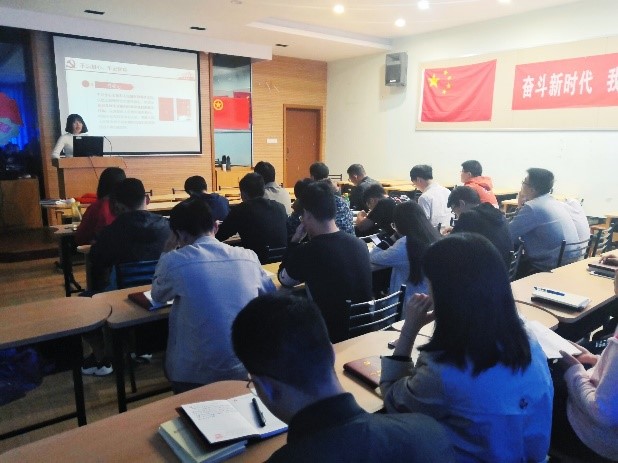 首先,支部书记高爽作了题为“不忘初心、牢记使命”的专题党课。她指出“共产党人的初心和使命”就是为中国人民谋幸福,为中华民族谋复兴;这次主题教育的总要求是“守初心、担使命、找差距、抓落实”,希望全体党员通过各种形式的学习达到“理论学习有收获、思想政治受洗礼、干事创业敢担当、为民服务解难题、清正廉洁作表率”的目标,实现“深入学习贯彻习近平新时代中国特色社会主义思想,锤炼忠诚干净担当的政治品格,团结带领全国各族人民为实现伟大梦想共同奋斗”的根本任务。