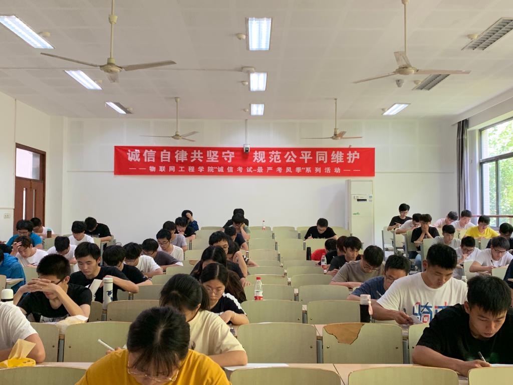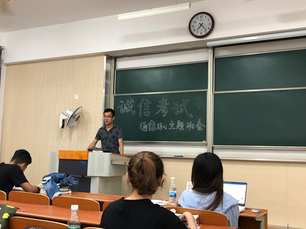 学生手册》上关于违反考场纪律的处理办法,每一位同学自觉签订“诚信考试承诺书”,并在学习委员带领下郑重宣誓。线上,通过学院IOT微信公众号平台,就考前复习办法、考前考试须知以及诚信应考展开了系列的生动宣传。这些预热活动,在同学们心中牢牢植入“诚信为本,公平竞争”的思想理念。