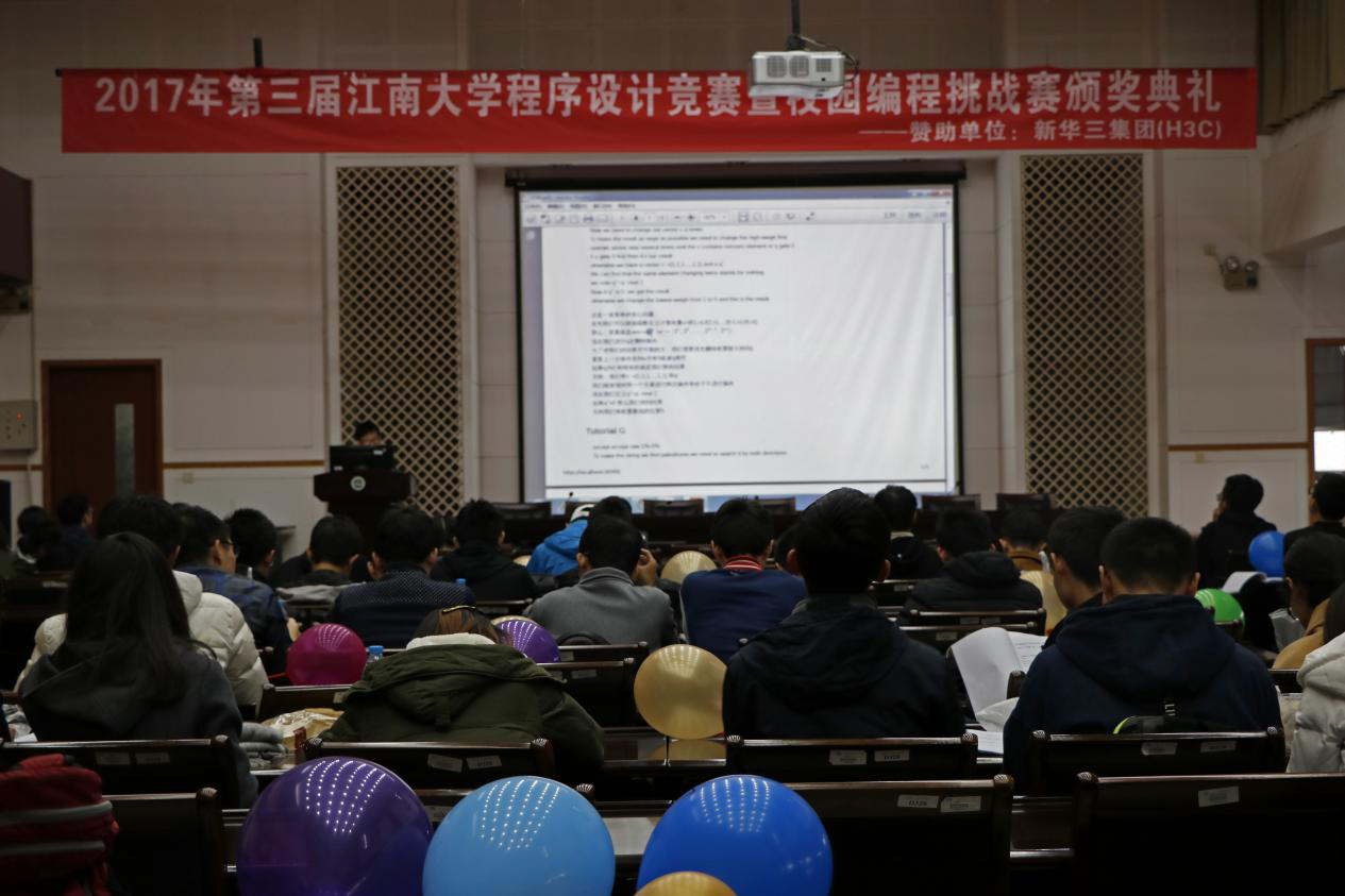 此次比赛历经5个小时的精彩角逐,最终有30个队伍获奖。颁奖典礼在物联网学院B310举行。首先,由ACM俱乐部的部长毛蕊上台发言,她感谢学院分团委的信任,大力支持此次比赛,同时由衷感谢新华三集团的大力赞助,让此次比赛顺利进行,并衷心祝贺获奖团队,希望所有参赛队伍能继续努力,取得更好的成绩。