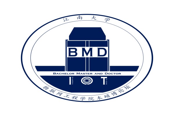 图书馆轮廓图,图上大写的BMD三个字母为本硕博论坛的英文缩写(Bachelor,Master and Doctor);LOGO下方的IOT三个字母是日本动漫