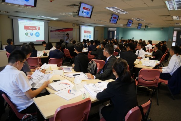 7月10日下午,游学实践团在位于Festival Walk Tower的保诚集团参加了企业实训。作为英国最大和全球最具实力的保险金融企业,多年来,保诚集团与我院保持了良好的人才培养合作关系。当日的企业实训,Hui Wai Tong Tom(棠哥)经理与刘玥灵经理率队领衔出席,以有趣的互动游戏开场,引导同学们快速融入实训氛围,棠哥带来的“一分钟自我介绍”精彩频出,带动现场气氛进入高潮。本次实训还为各小组分配了导师,以点对点方式,实现了对同学们的个性化指导。
