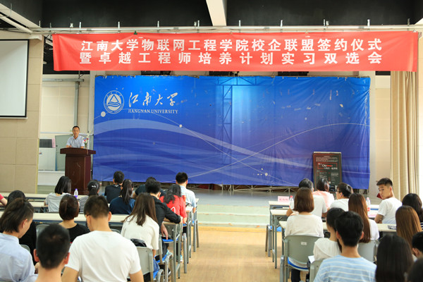 随后,熊伟丽副院长介绍了物联网学院物联网工程专业的建设情况,指出物联网工程专业是首批国家级特色专业,是教育部、江苏省双认证教学综合改革试点专业,课程设置涵盖自动化、计算机科学与技术、通信工程等相关专业知识技能,是一门宽口径、重技能的专业,按照国家“卓越工程师教育培训计划”的培养目标,致力于培养具有大工科背景、掌握物联网工程系统理论和物联网工程领域专门知识与关键技术的复合型人才。熊院长表示,希望同学们能够珍惜卓工实习的机会,与企业一同成长,通过“卓工计划”的工程实践训练,提高自己的实践能力、创新能力和解决工程实际问题的能力。