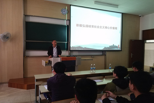 开班仪式后,朱飞书记以积极弘扬培育社会主义核心价值观为主题为学员们展开培训。朱书记首先通过对大国强国的支撑、精神凝聚的主心骨以及民族复兴的导航星三方面的讲解,阐明了积极弘扬和培育社会主义核心价值观是民族复兴的战略要务;随后,朱书记又对承载梦想的不懈追求展开讲解。朱书记告诉学员们,社会主义核心价值观是中华民族的不懈追求,也是马克思主义的不懈追求。最后,朱书记指明了教师们指导、教育学员们弘扬、践行社会主义核心价值观的路径,要做到“融”教,“融”于环境,“融”于实践,“融”于管理,做好“融”字文章。朱飞书记的讲座深刻详细,讲座在学员们热烈的掌声中结束。