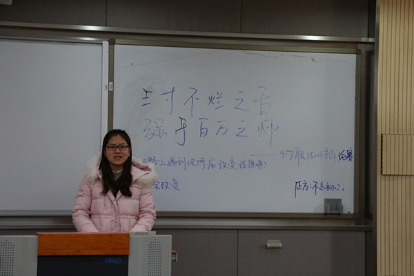 成长路上,总会遇到一些坎坷,经历很多困难。一些大牛们十几年如一日,困难中也坚持并坚定自己的理想与信念,最终取得辉煌,也有很多人改变最初的理想投身其他行业而取得巨大成功。作为大学生,我们也应该多一些对人生,对未来的思考。基于此,本次辩论会以“成长路上遭遇坎坷是否应该改变理想”为主题展开。支部成员以学号分为正反双方自由辩论。正方:不忘初心;反方:坚持理想。正反双方阐明论点后开始辩论,双方同学均踊跃发言,你追我赶,旁征博引,妙语连珠。正方更以社会主义核心价值观与中国梦为本次辩论开了个好头,多次精彩发言引得同学们发出热烈的掌声。会上热烈的气氛也得到了张平老师的肯定。最后,张平老师作出了指导总结。张老师针对本次辩题在宏观和具体两个方面做了概括与提升,并对此类辩论活动的开展进行大力赞扬,认为大学生应该多进行此类思辨活动,在提升自己精神层面的同时锻炼口才。