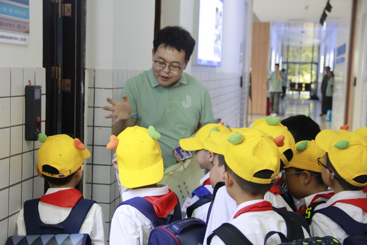 科技启迪智慧,创新成就未来。近日,来自无锡金桥双语实验学校二年级的45名学生走进物联网大学生创新实践基地,参观学习科创俱乐部科研环境和科创作品。同学们变身“小小未来科学家”,了解物联网应用前沿技术,领略智能制造业创新成果,亲身感受科技创新的神奇魅力。