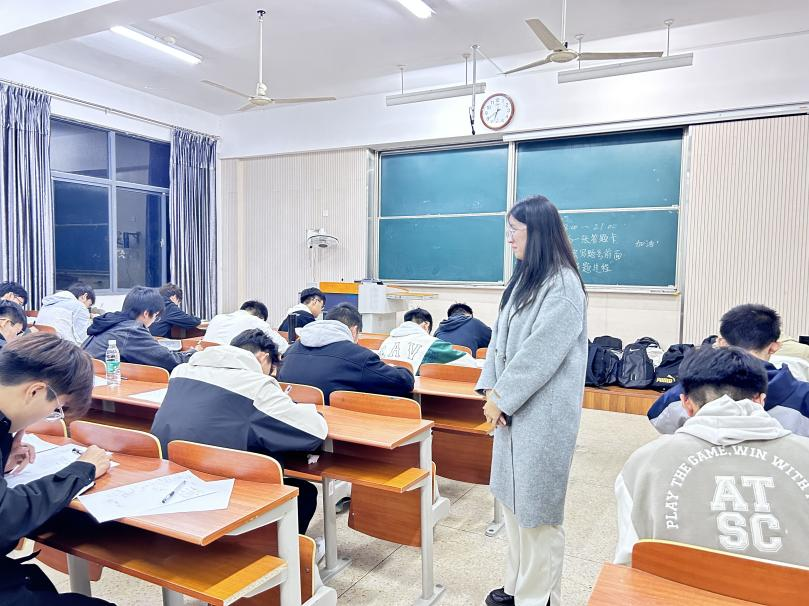2023级本科新生月考活动在第一教学楼举行。考试内容涉及高等数学、线性代数、C语言程序设计三门核心课程。本次活动由学院学生会学习促进部组织,覆盖2023级全体本科生,各班级班主任助理担任监考老师,新生辅导员李诗炜、谢幸福和学习促进部组成两级巡考,确保月考活动有序有效进行。