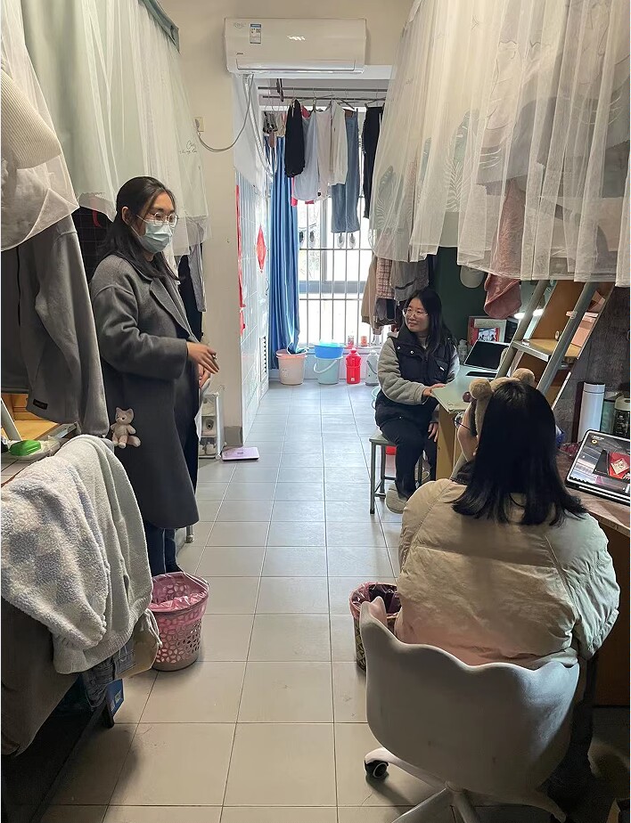 走访过程中,学院辅导员与宿管沟通交流,探讨如何更好地为学生做好管理与服务工作;辅导员们深入学生宿舍,与同学们进行了面对面的交流。他们详细询问了同学们的期末学习情况和生活状态,认真倾听了同学们关于课程学习、实践参与、职业规划等方面的想法和困惑。对于提出的问题,辅导员们耐心解答并提供积极建议,强调了调整好心态、合理安排作息时间的重要性,鼓励同学们制定好学业规划,诚信备考期末考试。
