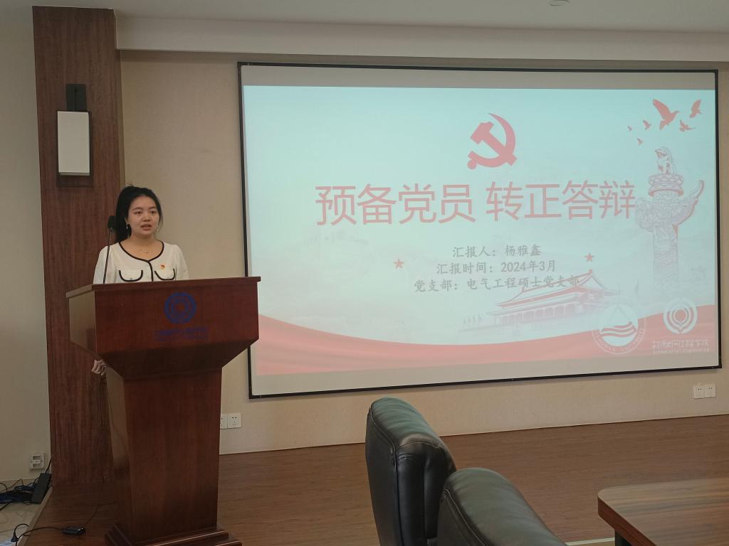 答辩分为个人陈述、现场问答、现场评议三个环节。预备党员们以饱满的热情和严肃的态度,依次上台进行陈述和答辩。他们结合研究生阶段的学习、科研和实践活动,阐述了自己在预备期一年内各方面的成长,深刻剖析了自身存在的不足和努力的方向。